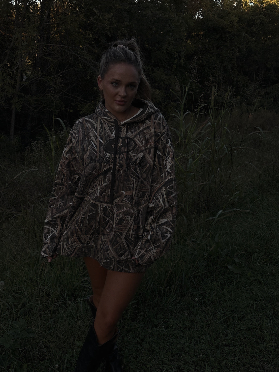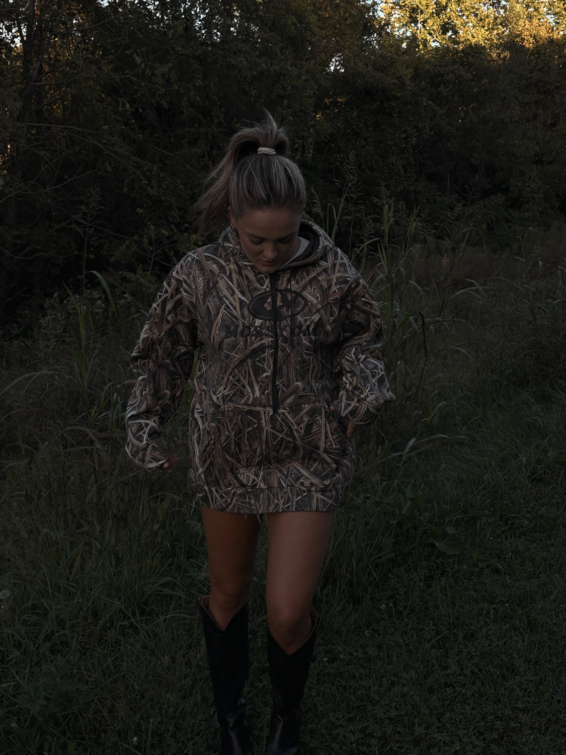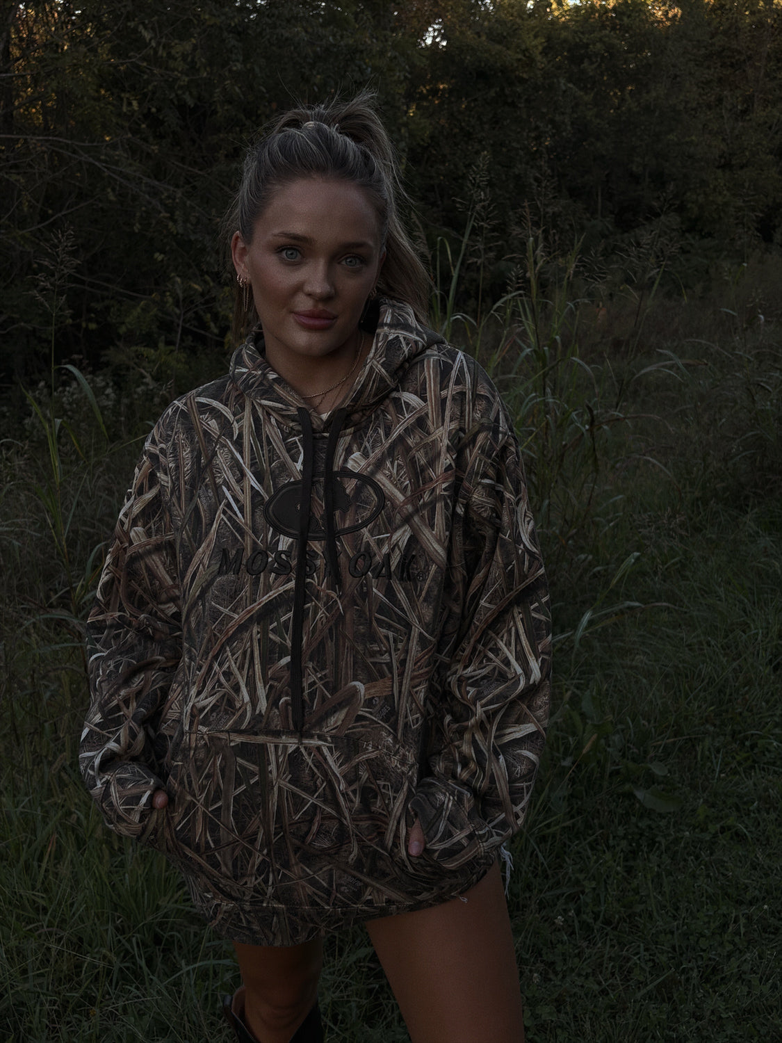 For the laid-back cowgirl with a wild side. This cozy camo hoodie features the classic Mossy Oak print with a soft interior and relaxed fit. Style it oversized with denim or biker shorts for that effortless off-duty, outdoors-meets-street look.