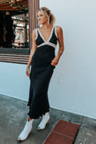 This dress is giving Sophia Richie vibes. Loving this satin dress for transitioning into fall. Style with a sweater over it and sneakers for a casual look. Or style by itself and heels for date night. Lace detailing, v-neck cut midi style.